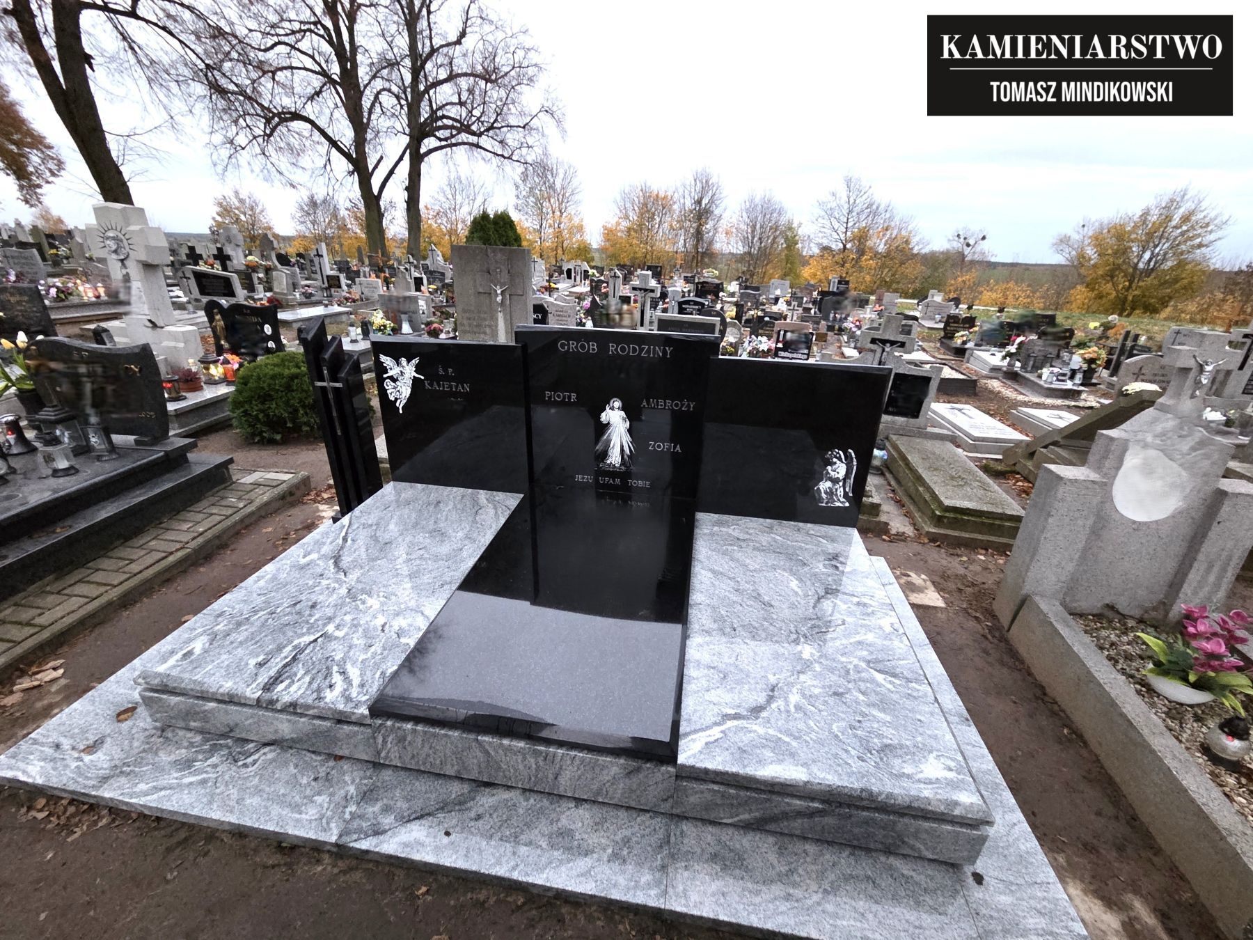 Kompleksowa obsługa - zajmujemy się całością procesu: od wizualizacji, przez wykonanie grobowca, aż po montaż na cmentarzu.